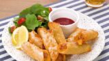- ハムとチーズのくるくる巻き!餃子の皮でブリトー風 豆乳チーズver