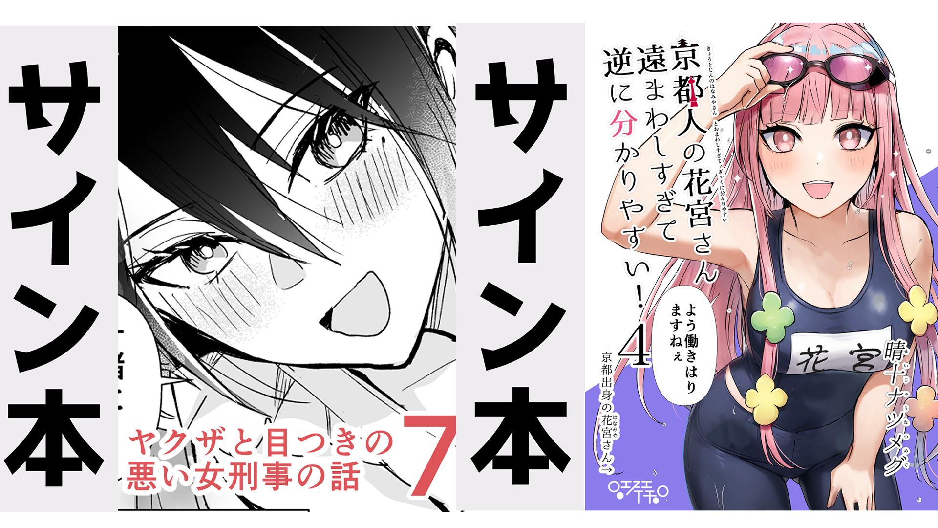 - 12月31日まで限定販売!「ヤクザと目つきの悪い女刑事の話7」「京都人の花宮さん遠まわしすぎて逆に分かりやすい!4」サイン本!