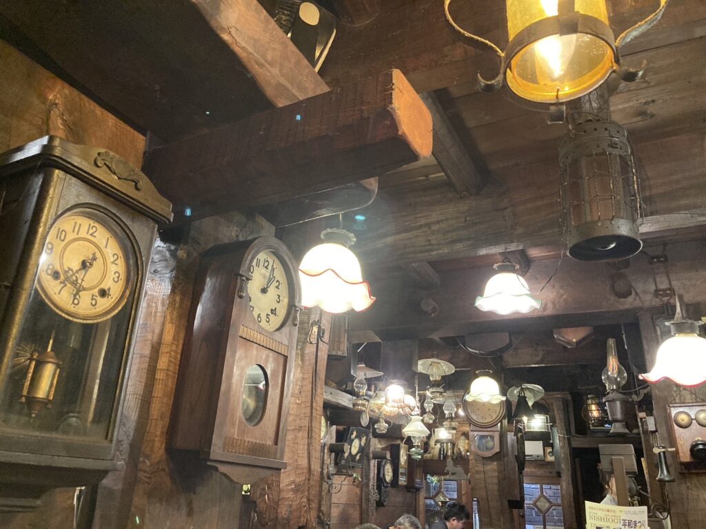 一歩足を踏み入れた瞬間、まるで時空を越えたような空気が流れます。店内には年代物の骨董やアンティークの家具がずらり。くすんだ木の香りと、少し薄暗い照明が“異世界”を演出してくれます。