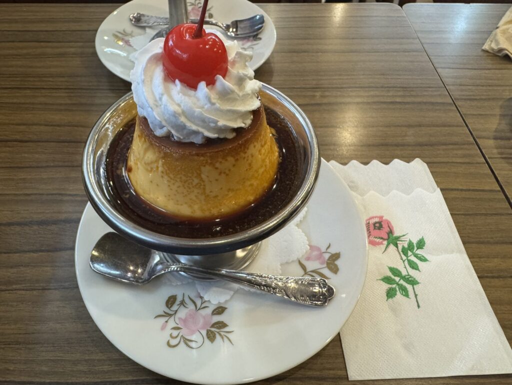 使い込まれた椅子やメニュー表、そして名物の“手づくりプリン”。