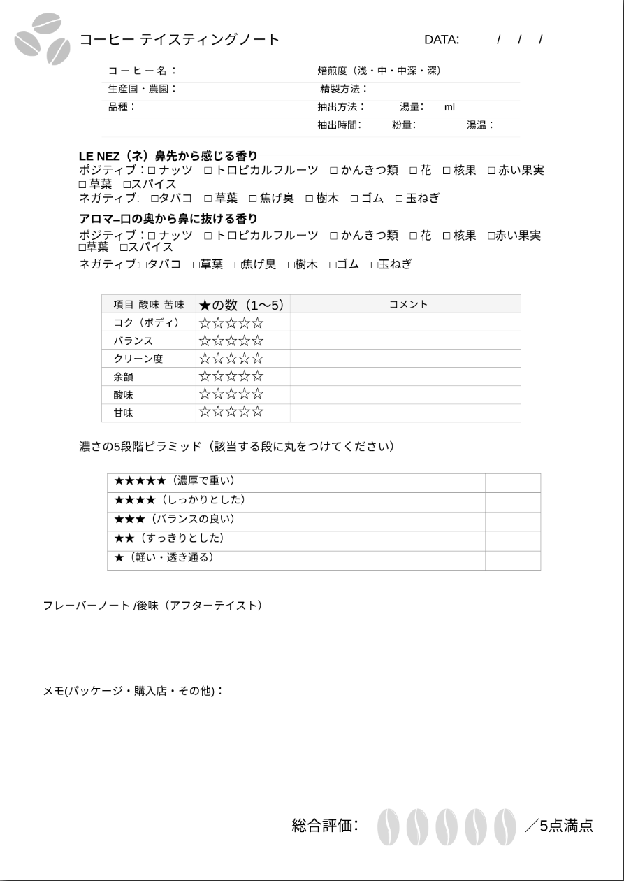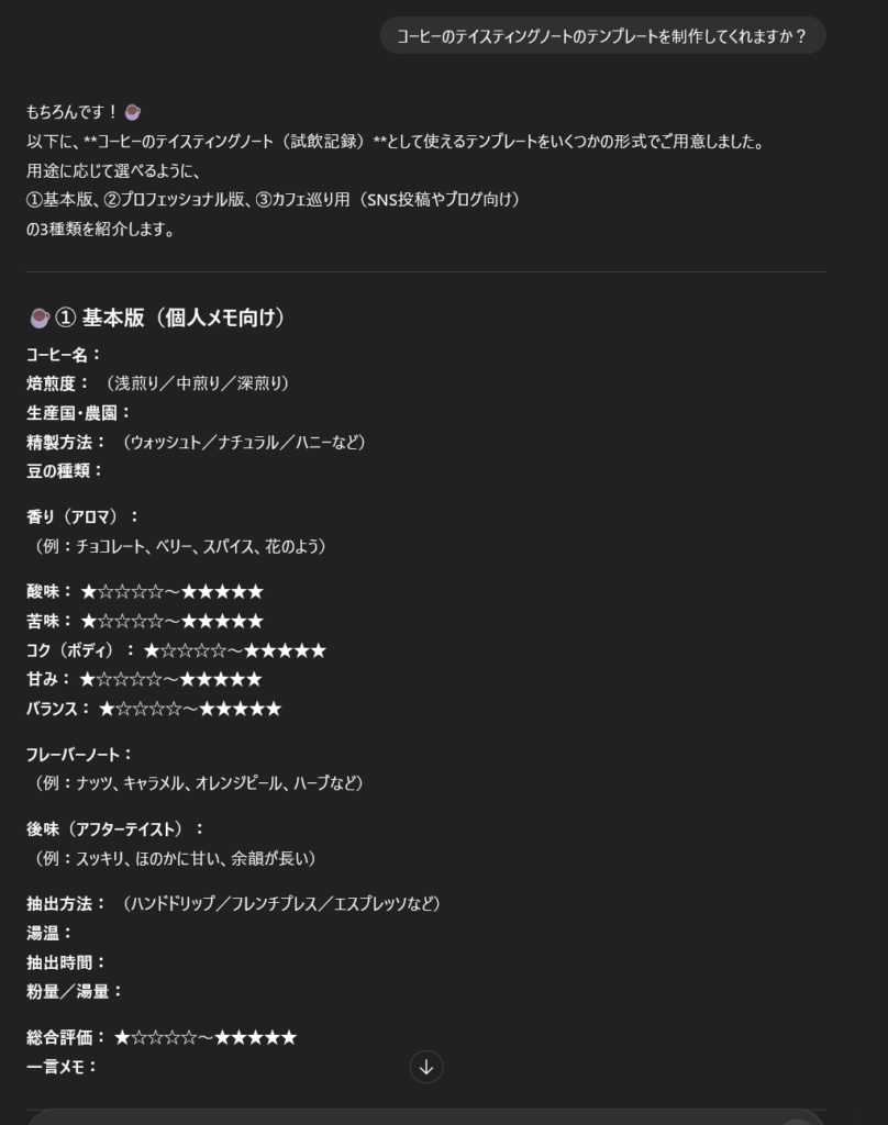 - 【AI】chatGPTでコーヒーテイスティングノートを作ってみた【ダウンロードあり】